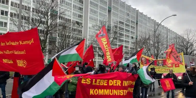 A pesar del legado histórico del fascismo, que masacró a líderes del proletariado alemán como Rosa Luxemburgo y Karl Liebknecht, y provocó la muerte de millones de personas al iniciar tanto el genocidio en Alemania durante el período fascista nazi así como con las guerras imperialistas de división, el Estado imperialista alemán ha sido opresivo una y otra vez y vemos que está dando nuevos pasos en su intento de asumir un papel militarista y belicista. Ayer hubo un cambio de actitud en la policía de Berlín, donde el actual gobierno de la coalición del Semáforo (SPD-Verdes-FDP), que adoptó una política de apoyo al ataque del Estado de Israel contra la nación palestina, y contra las acciones y manifestaciones llevadas a cabo en Alemania por parte de la resistencia nacional palestina, también protegía los intereses del capital monopolista y del bloque imperialista con el que está aliado.