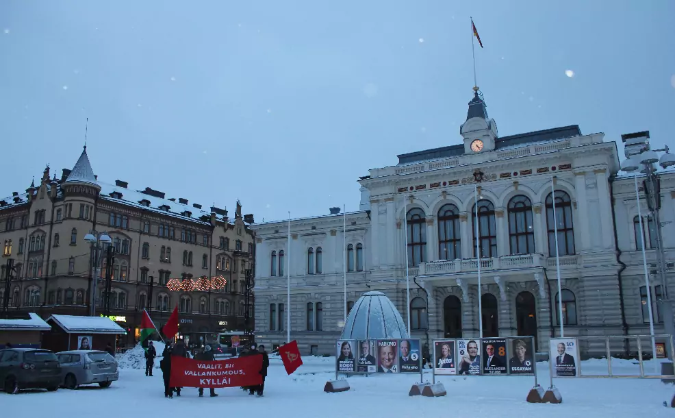 Imagen de cabecera: una marcha contra la elección presidencial en Finlandia tuvo lugar el 27 de enero. Fuente: Punalippu