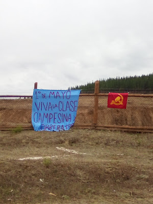 Imagen de cabecera: pancarta del Frente Revolucionario del Pueblo (FRP) y bandera de la Liga Comunista Internacional (LCI) colgada en zonas campesinas de Maule. Fuente: Prensa Chiripilko