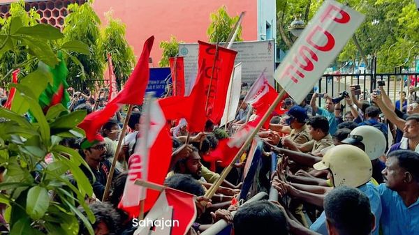 Como informa el RSF, antes incluso de empezar la marcha, la policía la bloqueó e hizo una barricada, Frente a esto, los estudiantes intentaron romperla y avanzar, pero la policía reprimió a los manifestantes y los atacaron, incluyendo a varios obreros mayores y estudiantes y les llevaron a la furgoneta de la policía. Abrieron la cabeza de un estudiante por el ataque. La policía arrestó a 52 manifestantes y los llev a la comisaría de Lalbazar y abrieron un caso.