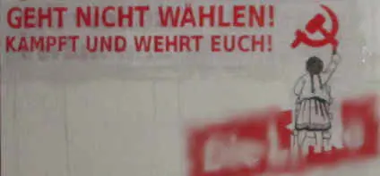 Durante las elecciones generales en Alemania, activistas de Roter Bund (Liga Roja) continúan sus actividades contra ellas bajo los lemas “¡Combatir y Resistir!” y “¡Boicotear las Elecciones!”.