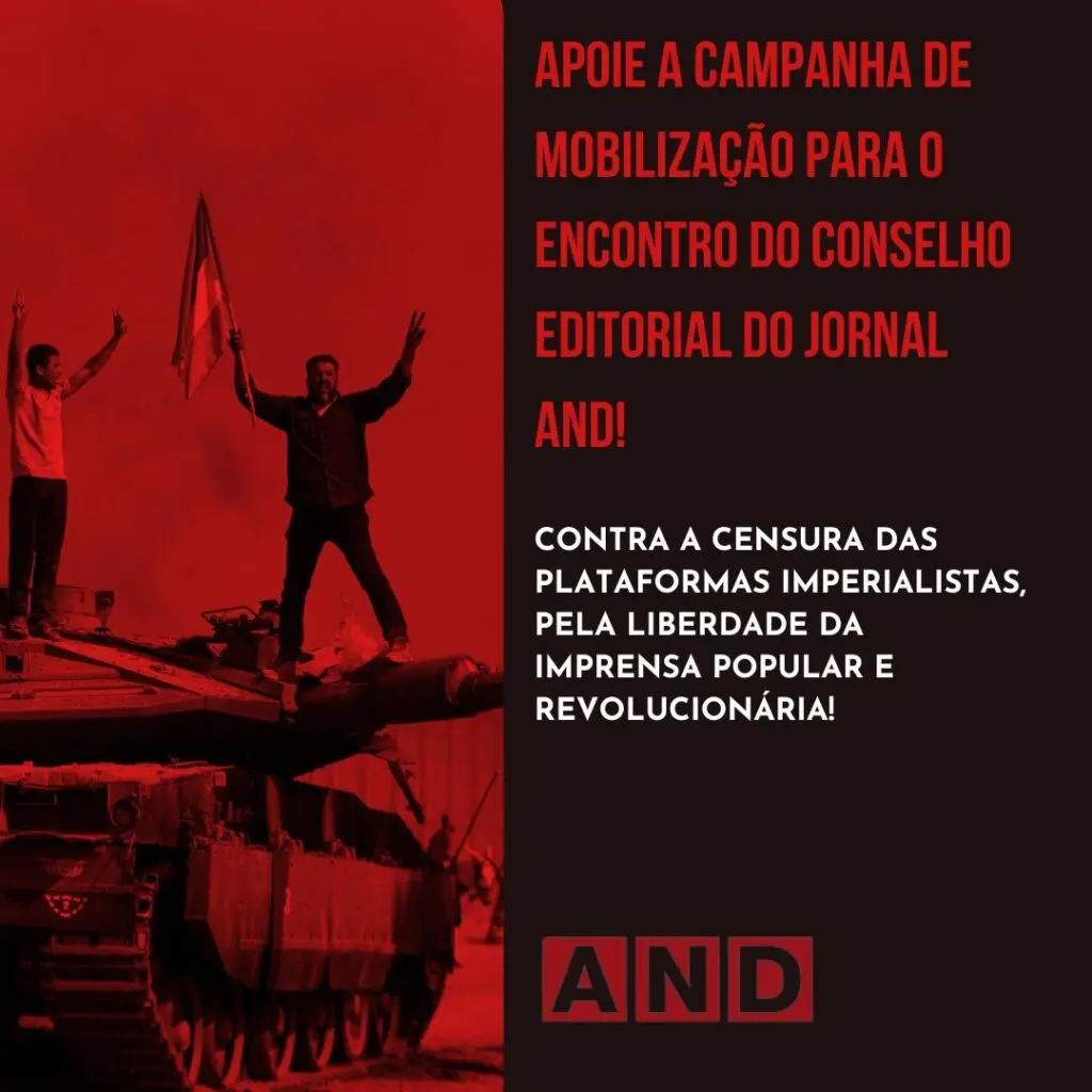 El periódico democrático A Nova Democracia ha lanzado una campaña de financiación para poder reunir al Consejo Editorial del periódico en una reunión en Brasil. Como reporta el propio periódico, “Frente a los recientes ataques a la libertad de prensa y la censura impuesta por las grandes plataformas, con la prohibición del canal A Nova Democracia (AND) por parte de YouTube, se hace aun más urgente fortalecer la lucha por una prensa revolucionaria.” Este evento también será esencial para fomentar el debate sobre la Resistencia Nacional Palestina y la lucha campesina, combatiendo contra el asedio de las plataformas mediáticas imperialistas.