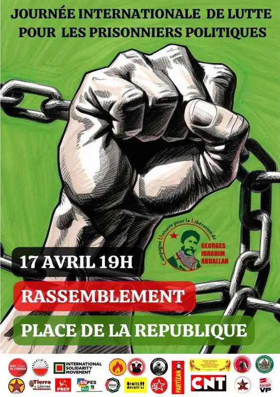 Este día del 17 de abril—conmemorado como tal—sirve para reunir en torno a esta fecha simbólica a todos los aliados solidarios de nuestros prisioneros políticos encarcelados en Francia y en todo el mundo, quienes, a través de su compromiso, luchas y combates—ya sean antisionistas, anticolonialistas, anticapitalistas o antiimperialistas—son parte de esta comunidad de lucha al servicio de la causa de los pueblos y contra la opresión y la explotación.