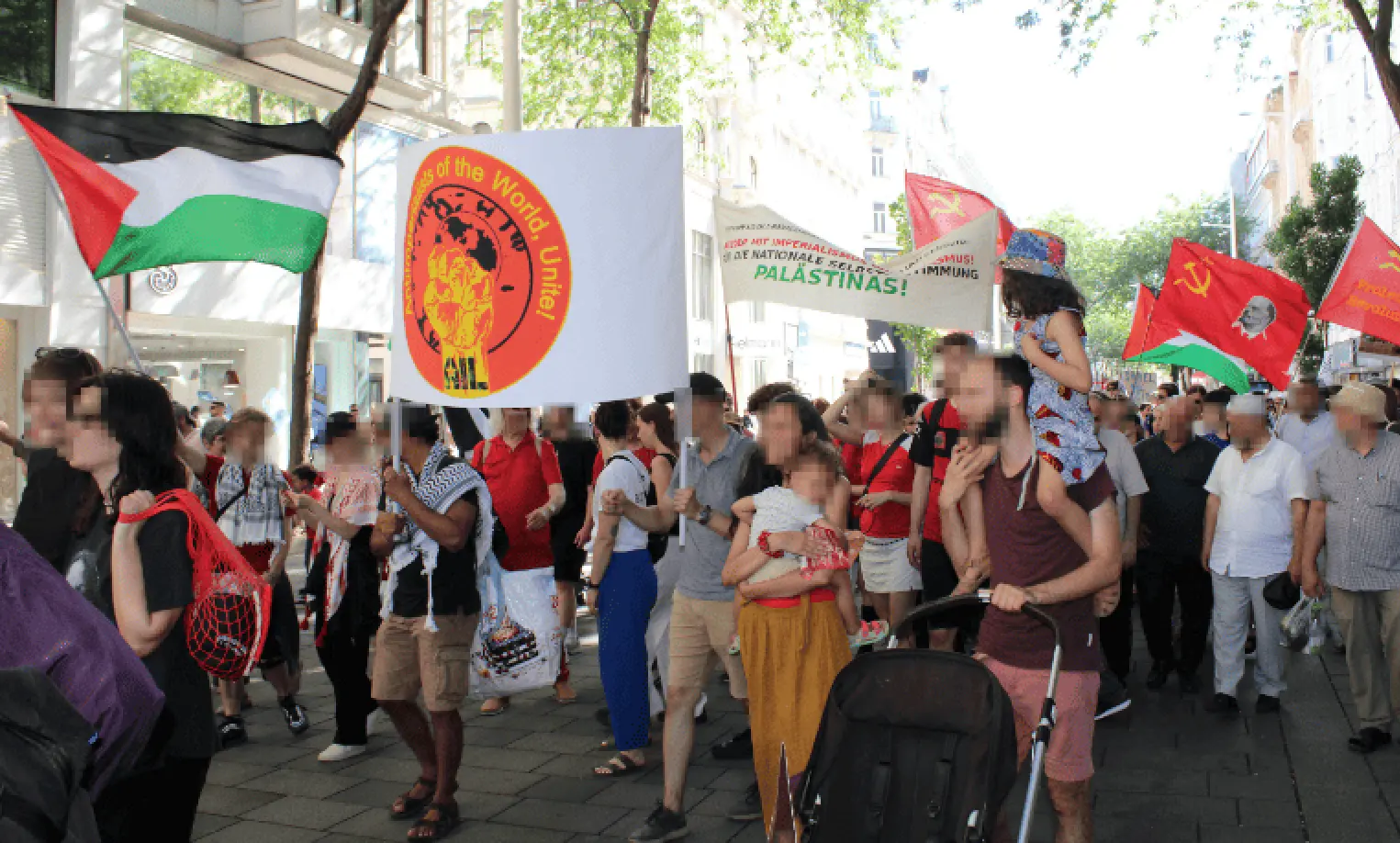 El sábado 28 de junio miles de personas se manifestaron en una manifestación por Gaza en Viena. 28 organizaciones de diferente tipo, incluida Acción por los Derechos Democráticos del Pueblo, que asistió usando una pancarta de la Liga Anti-imperialista, apoyó la manifestación por Paesltina, contra la injustificada agresión a Irán y por Georges Ibrahim Abdallah.