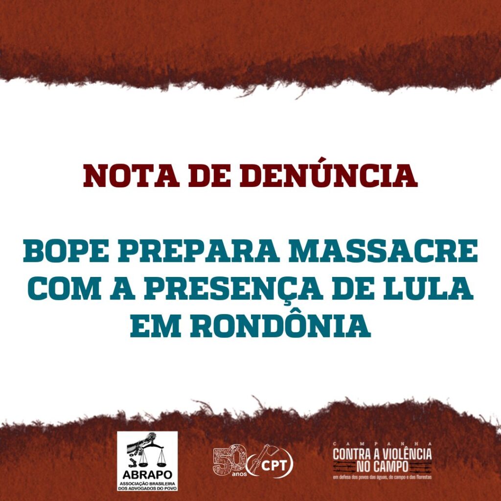 La CPT- Comisión Pastoral de la Tierra se suma a otras entidades como Abrapo, denunciando la operación de BOPE de este mes en Rondonia, como AND está compartiendo.