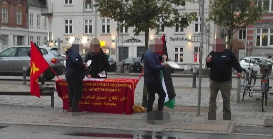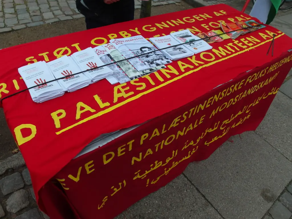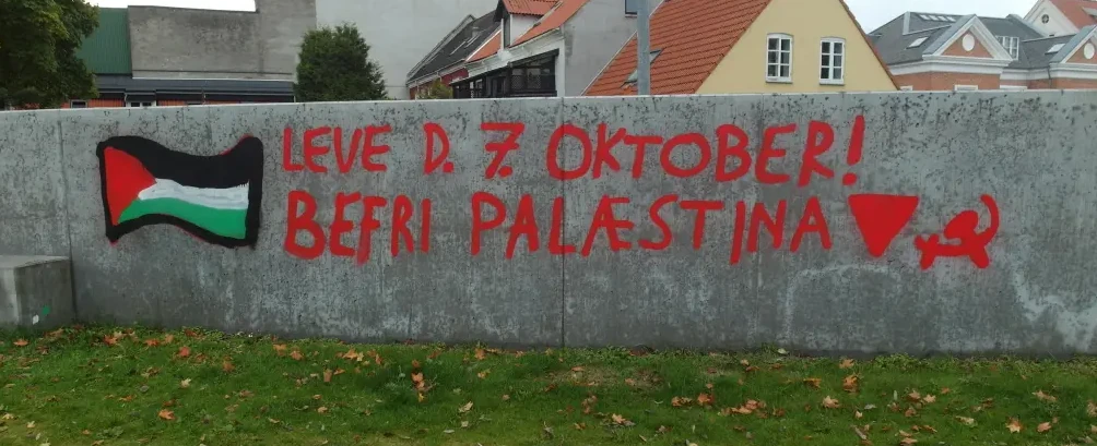 En Aalborg, Dinamarca, activistas pusieron una mesa informativa para distribuir panfletos. Apareció una pinta en el barrio proletario de Karolinelund.