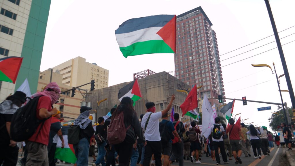 Una manifestación en Ciudad Pasay, Filipinas, marchó hacia la embajada de EE.UU., el 7 de octubre. La marcha se realizó en respuesta al llamamiento de la Liga Internacional de la Lucha de los Pueblos (ILPS). También condenaron el régimen de Marcos.