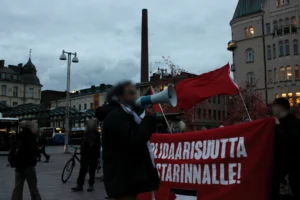 En Tampere, Finlandia, el Colectivo Antiimperialista participó en la manifestación y condenó los ataques y las provocaciones del Estado de Israel.
