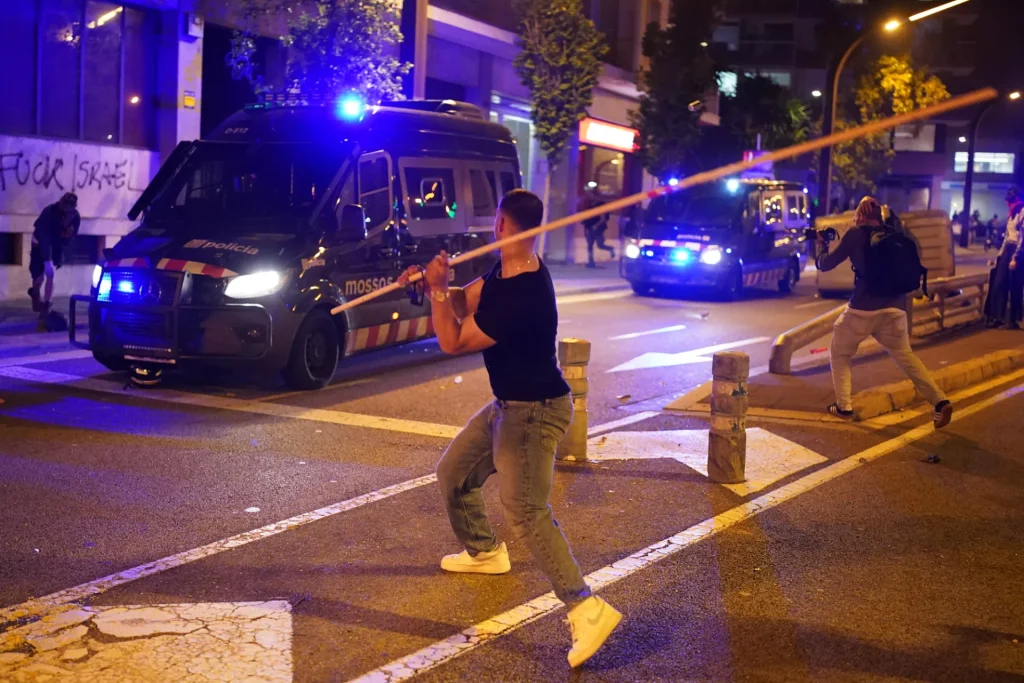 En Barcelona hubo numerosas acciones movilizaciones y acciones combativas. Se cortó una autopista principal, accesos a eventos deportivos así como la entrada al puerto de la ciudad. Hubo piquetes combativos y se levantaron barricadas. También se atacó el Consulado de Israel con cohetes y petardos, así como hubo varios enfrentamientos con la policía. También hubo acciones contra monopolios colaboracionistas con el genocidio, como contra locales del Burger King. Fueron detenidas 15 personas.