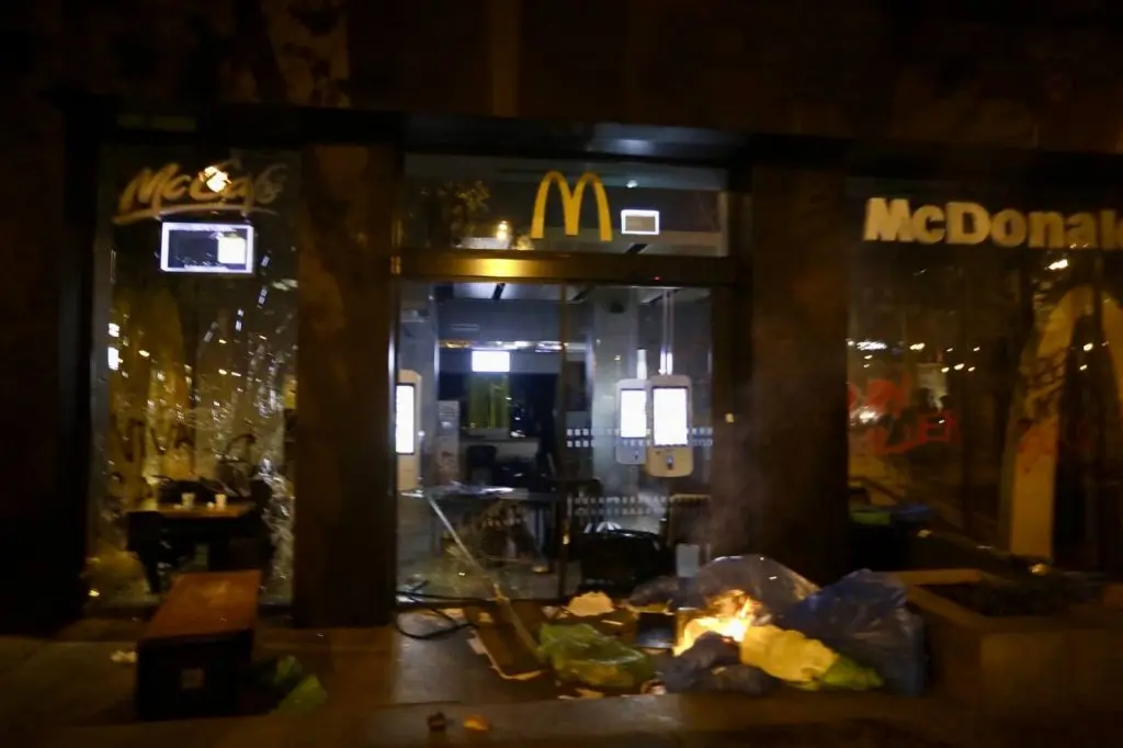 En València hubo tres detenidos que realizaron un sabotaje durante la madrugada del 15 de octubre. Se realizaron acciones contra locales de monopolios como el McDonald’s: