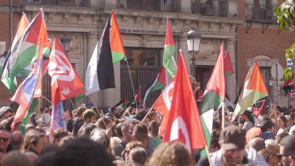 Servir al Pueblo informa que “la Huelga General de 24 horas del miércoles 15 de octubre fue una gran jornada de lucha internacionalista. Hubo más de 200 concentraciones y manifestaciones en ciudades y pueblos de todo el Estado español, así como miles de piquetes frente a grandes empresas y universidades.” Miles tomaron las calles y se realizaron acciones contra locales de monopolios relacionados con el genocidio perpetrado en la Franja de Ganza. Hubo marchas masivas en Madrid y momentos de lucha y tensión en Barcelona y València especialmente.