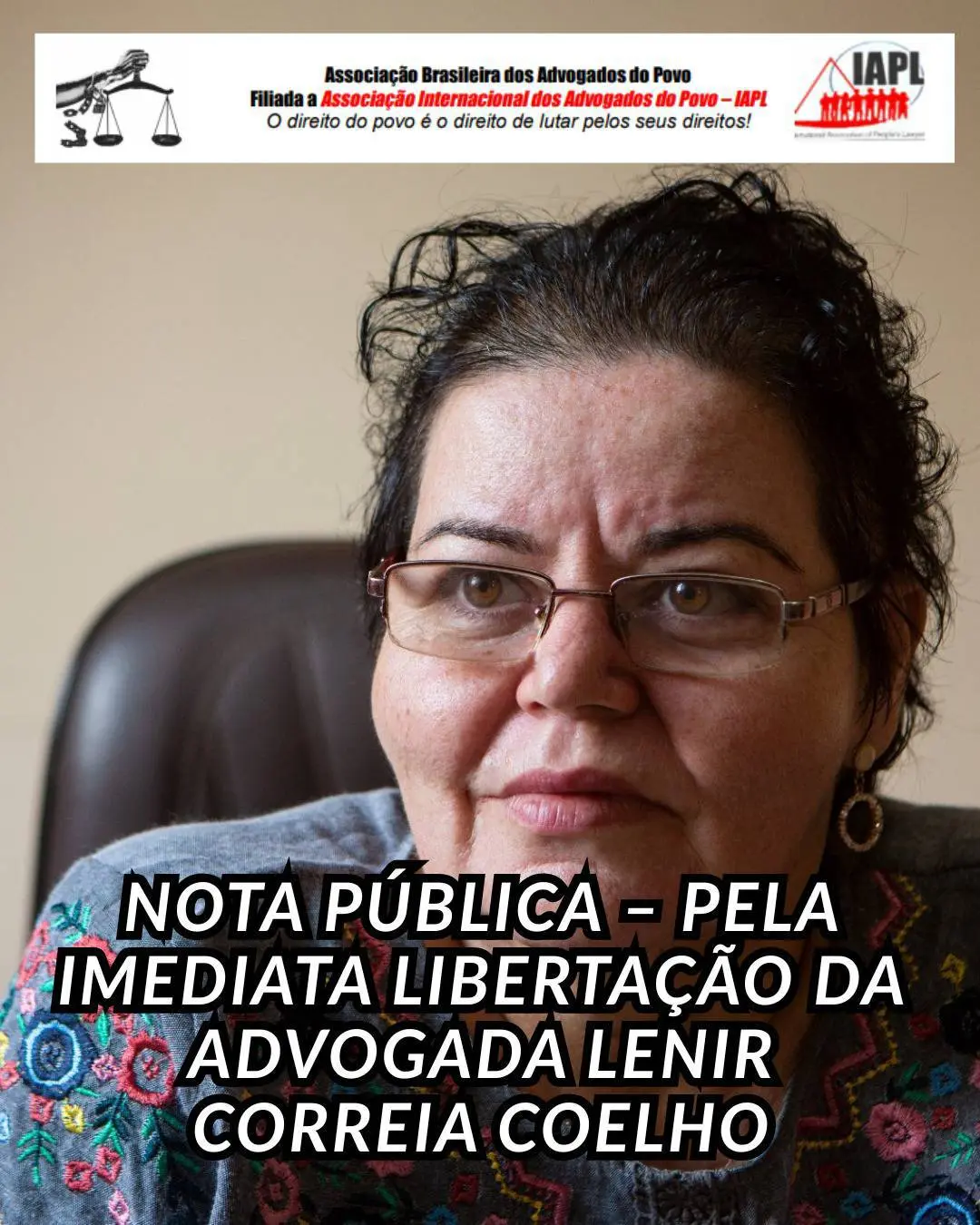 La Asociación Brasileña de Abogados del Pueblo – Gabriel Pimenta (ABRAPO) denuncia públicamente la detención arbitraria e inconstitucional de la abogada Lenir Correia Coelho.