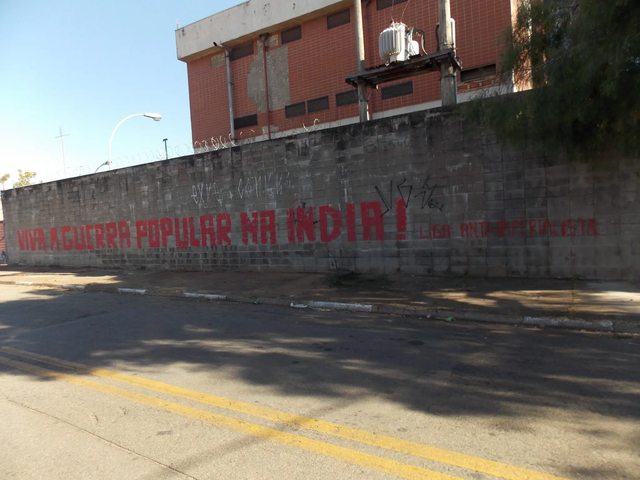 Apareció una pinta firmada por la Liga Antiimperialista Campinas, São Paulo, Brasil, conmemorando la Guerra Popular en India.