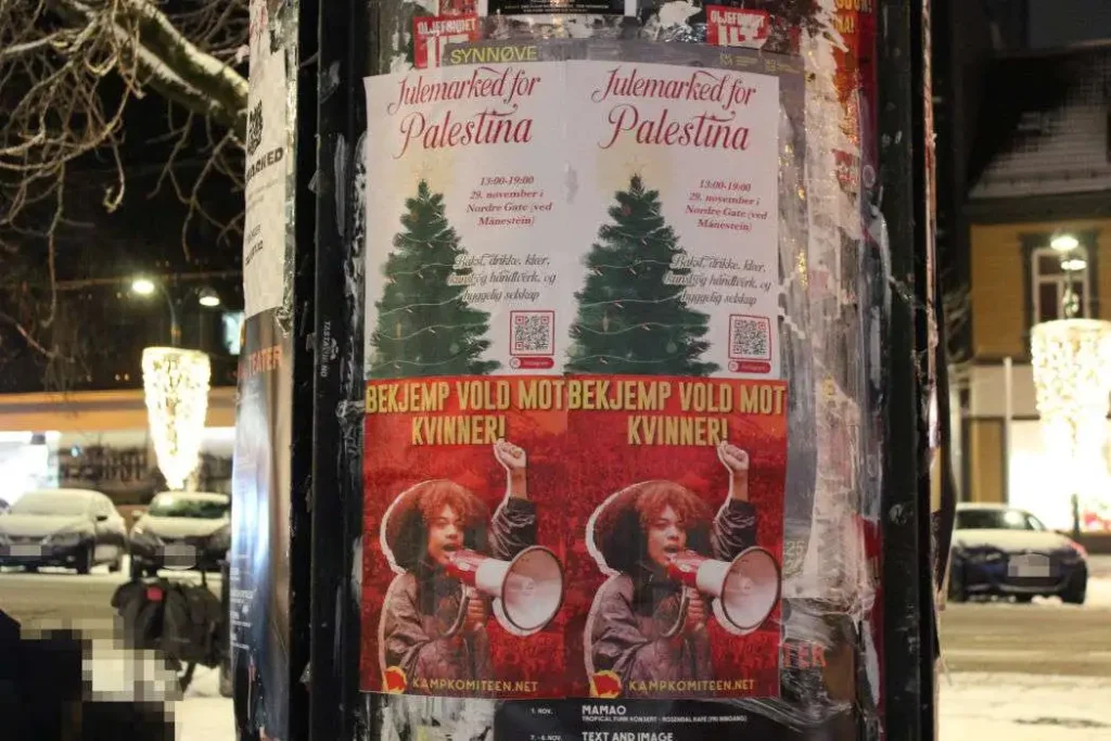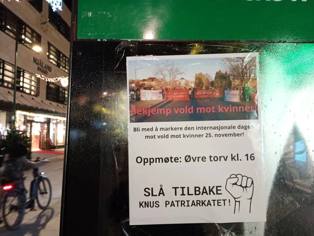 Kampkomiteen pegó carteles en Trondheim contra la violencia contra las mujeres: