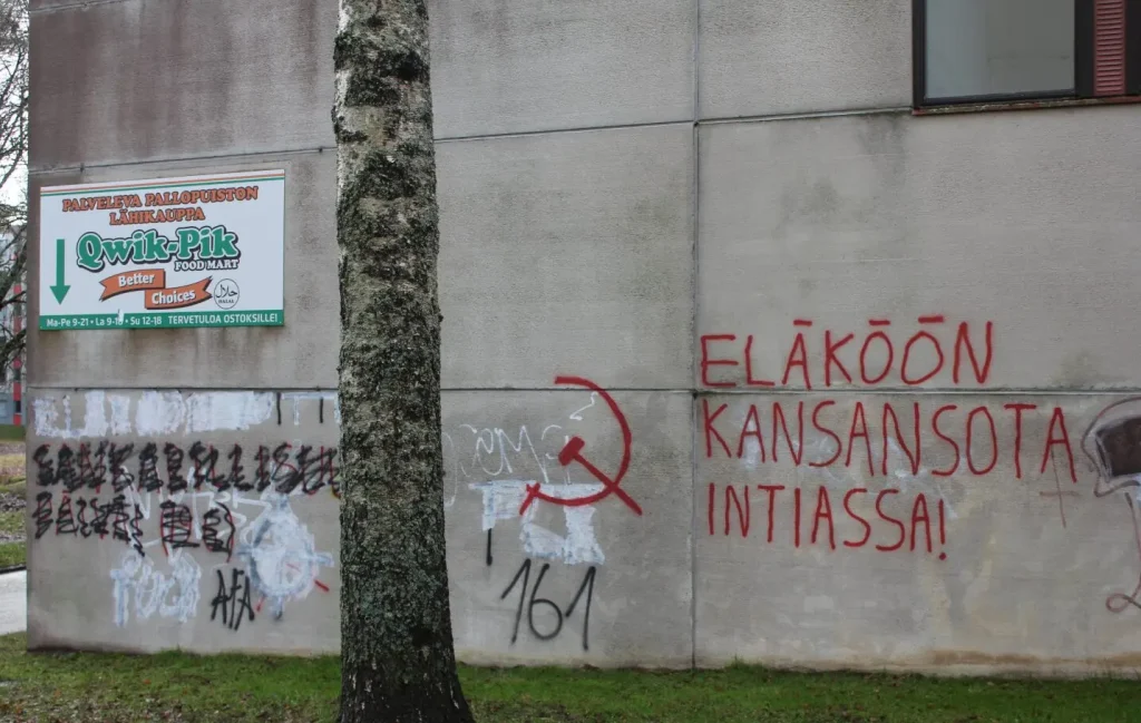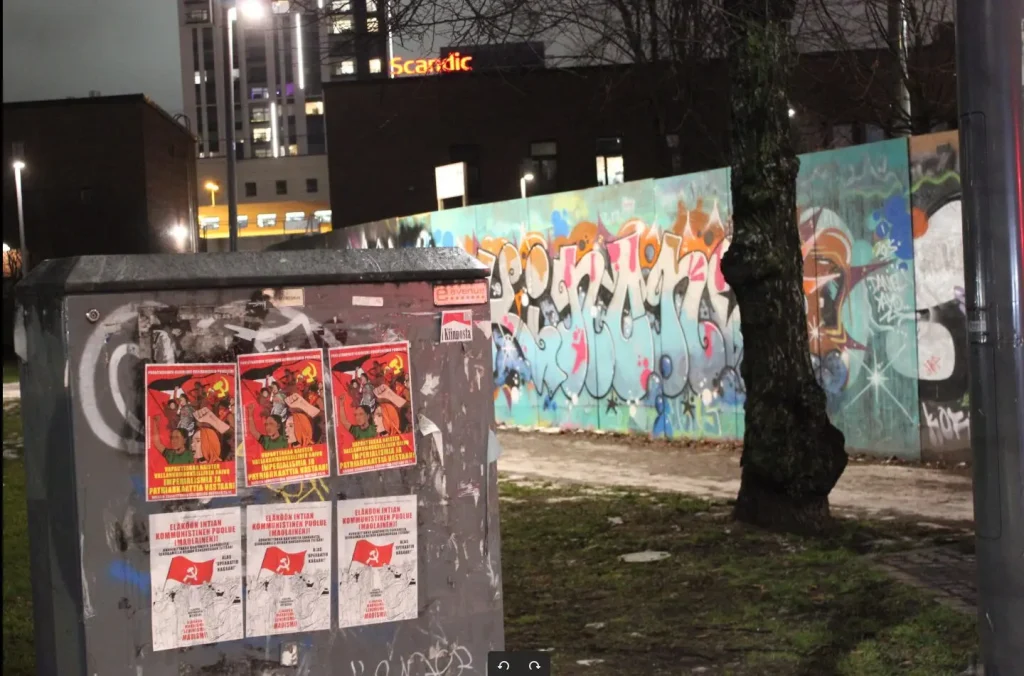 Punalippu ha informado de pintas y carteles pegados en Tampere, Finlandia, en defensa de la Guerra Popular en India: