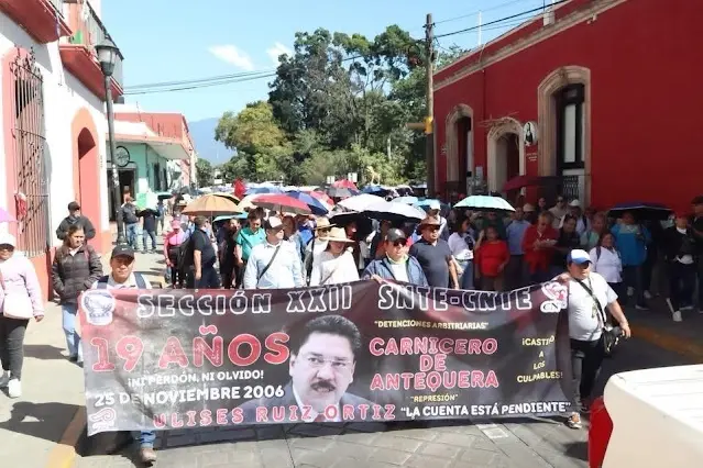 Para recordar esos eventos y rendir homenaje a los caídos, la Sección XXII convocó a una marcha. Durante la movilización, se hizo un llamado a no olvidar la represión sufrida, enfatizando casos de tortura como el de José Luis Zurita Ramírez, fallecido por esta tortura. Desde temprano, maestros y organizaciones sociales, como el Movimiento Femenino Popular (MFP-Mx), se reunieron en la fuente de las 8 regiones, avanzando por la calzada Porfirio Díaz.