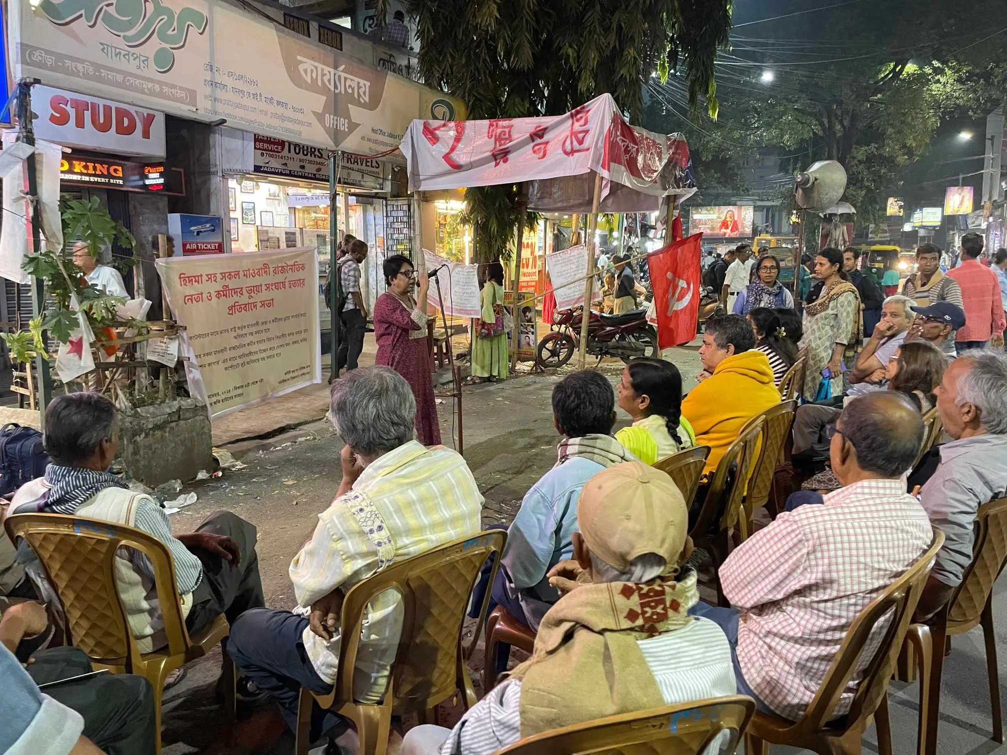 El Comité por la Liberación de los Prisioneros Políticos (Bengala Occidental) organizó una movilización de protesta frente a la cafetería Jadavpur el 22 de noviembre de 2025 contra el asesinato de dirigentes políticos y activistas maoístas, incluido el camarada Hidma, en falsos encuentros; contra la conspiración para entregar las vastas zonas ricas en minerales de la India Central, a Adani-Ambani, y otras corporaciones nacionales y extranjeras que perpetran genocidio contra los indígenas en nombre de la «Operación Kagar». Exigieron una investigación judicial sobre el asesinato de todos los activistas políticos maoístas, incluido el camarada Hidma, y la liberación inmediata e incondicional de todos los prisioneros políticos. Varias organizaciones e individuos democráticos y progresistas, como APDR, Frente de Estudiantes Revolucionarios (RSF) y FIR, intervinieron en la manifestación.