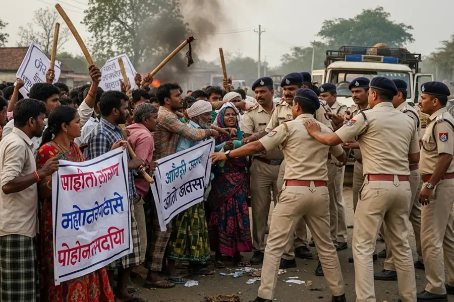 Según los informes, después de que la policía detuviera a algunos de los manifestantes, los campesinos se defendieron, y miles de campesinos de las aldeas vecinas se unieron a la lucha. En defensa de la protesta, bloquearon carreteras, irrumpieron en la planta de manipulación de carbón de JBL e incendiaron una cinta transportadora y varios vehículos, incluidos dos tractores, y al menos ocho agentes de policía resultaron heridos.