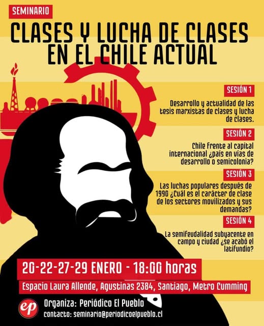 Desde Periódico El Pueblo invitamos a participar en un seminario de cuatro sesiones de estudio y discusión sobre la caracterización de las clases sociales y las luchas actuales en Chile.