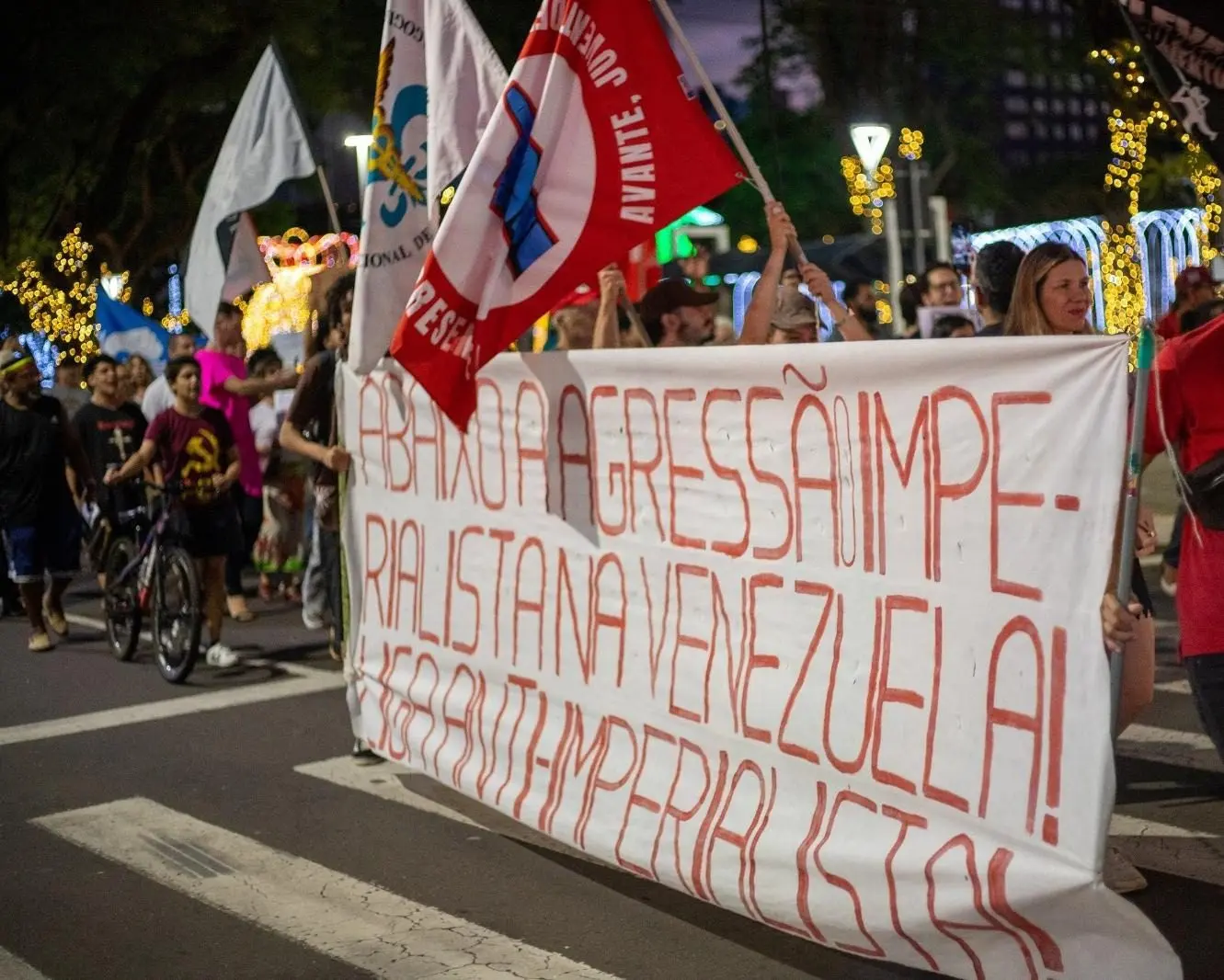 Imagen de cabecera: Se llevó a cabo una manifestación en Maringá, Brasil, donde se vio una pancarta de la Liga Antiimperialista (LAI). Fuente: A Nova Democracia (AND).