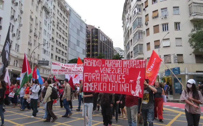 Se han producido numerosas movilizaciones en todo Brasil. En Rio de Janeiro se llevó a cabo una movilización desde el centro de la ciudad hasta el Consulado General de los Estados Unidos. Se corearon consignas como “¡Yanquis, fuera!” y “¡América Latina es nuestra tierra, fuera yanquis de Venezuela!”. Se quemaron banderas yanquis y sionistas.