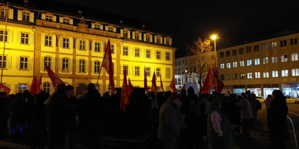 Alrededor de 200 personas participaron en una protesta celebrada en Darmstadt el 5 de enero para condenar el ataque imperialista estadounidense contra Venezuela. Partizan se encontraba entre los participantes.