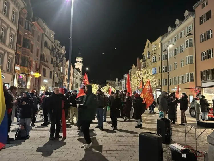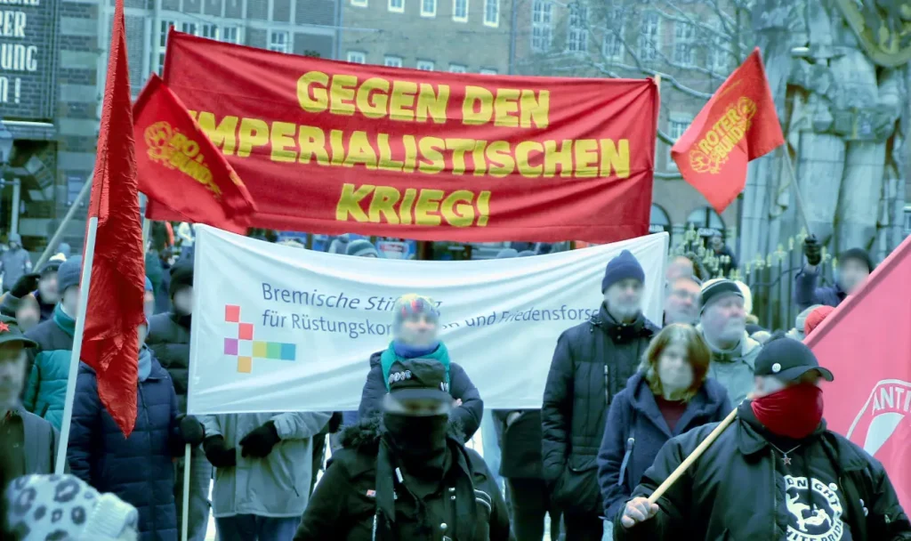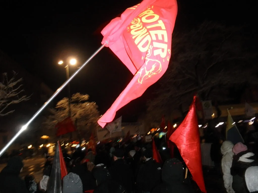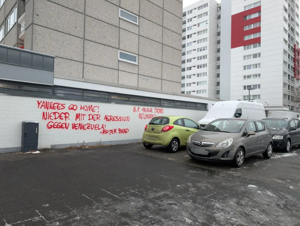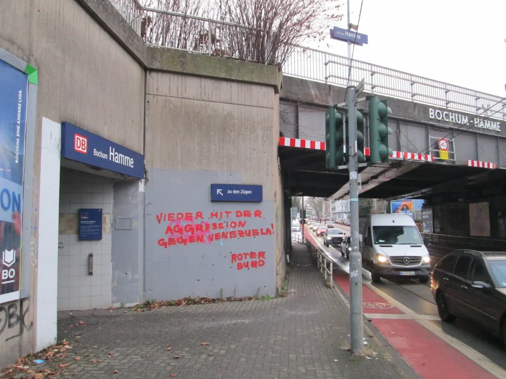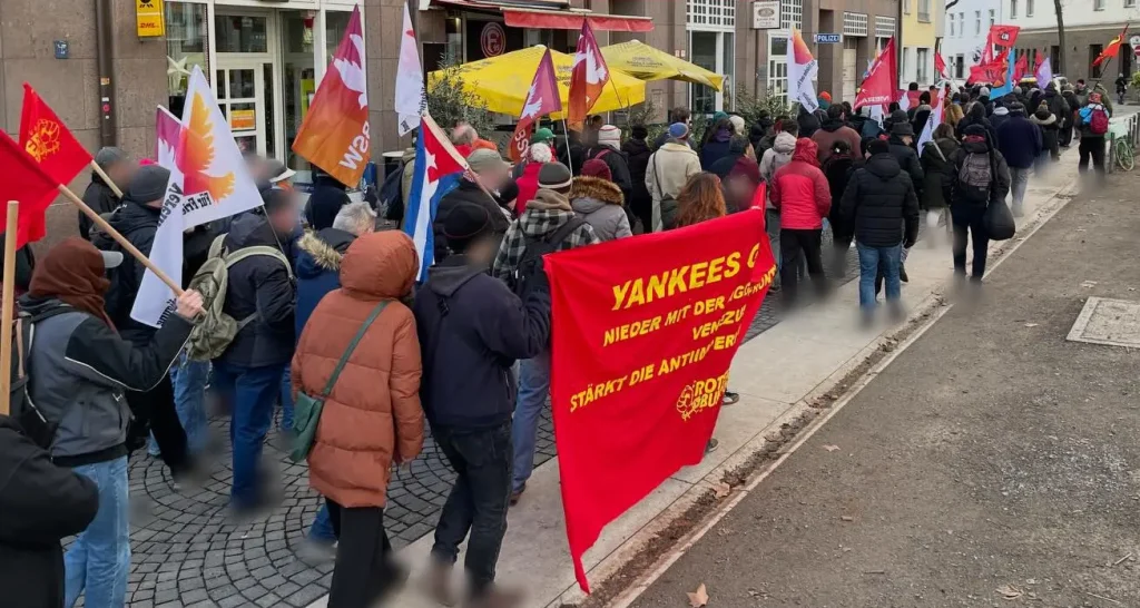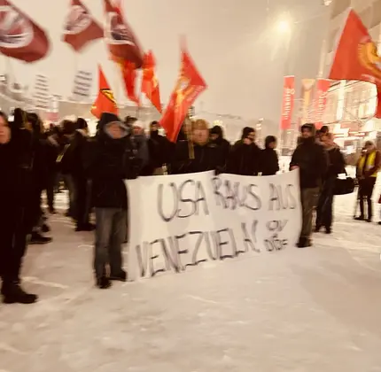 Un día después de la intensificación de la agresión del imperialismo yanqui contra Venezuela mediante bombardeos y el secuestro del presidente, la Liga Roja participó en la manifestación de Düsseldorf y pronunció un discurso.