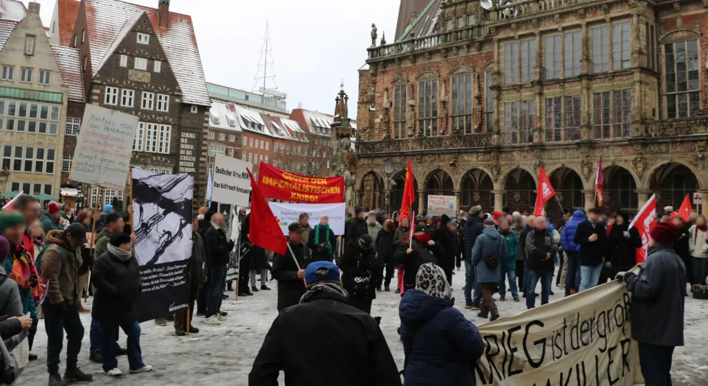 También se llevaron a cabo movilizaciones en Hamburgo y Bremen. En la primera ciudad, la protesta tuvo lugar frente al consulado estadounidense. La Liga Roja también participó en una manifestación espontánea el 3 de enero organizada por varios grupos antiimperialistas. En Bremen, varios grupos organizaron una concentración. La Liga Roja participó con varios compañeros y amigos, y en su discurso hicieron hincapié en el fortalecimiento del frente antiimperialista, un punto que fue bien recibido por algunos de los participantes en la concentración. La policía intentó intimidar a los manifestantes.
