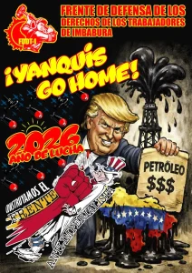 Los Comités Revolucionarios del Estado español también han emitido una declaración, compartida por Servir al Pueblo. La organización denuncia las intenciones del imperialismo yanqui y del gobierno de Trump y declara: “Los imperialistas yanquis son los máximos responsables de la más absoluta miseria en la que viven cientos de millones de personas en el continente. Invaden militarmente a los países de América Latina y dan golpes de estado para instaurar gobiernos títeres que permitan a sus corporaciones y monopolios saquear las riquezas naturales y explotar a las masas con total impunidad.” Destacan como el nivel de organización de la lucha antiimperialista está creciendo: “Desde las entrañas de América Latina se está impulsando la Liga Antiimperialista (LAI), un proyecto para unificar las luchas antiimperialistas de todo el mundo. Sus banderas ya ondean en México, Colombia, Ecuador, Chile y Brasil, también en otros países oprimidos como Turquía, y hasta en el mismísimo corazón de las metrópolis imperialistas, como en Alemania, Francia y dentro de la mismísima bestia, en los EEUU.” Acaban llamando a formar un frente antiimperialista mundial: