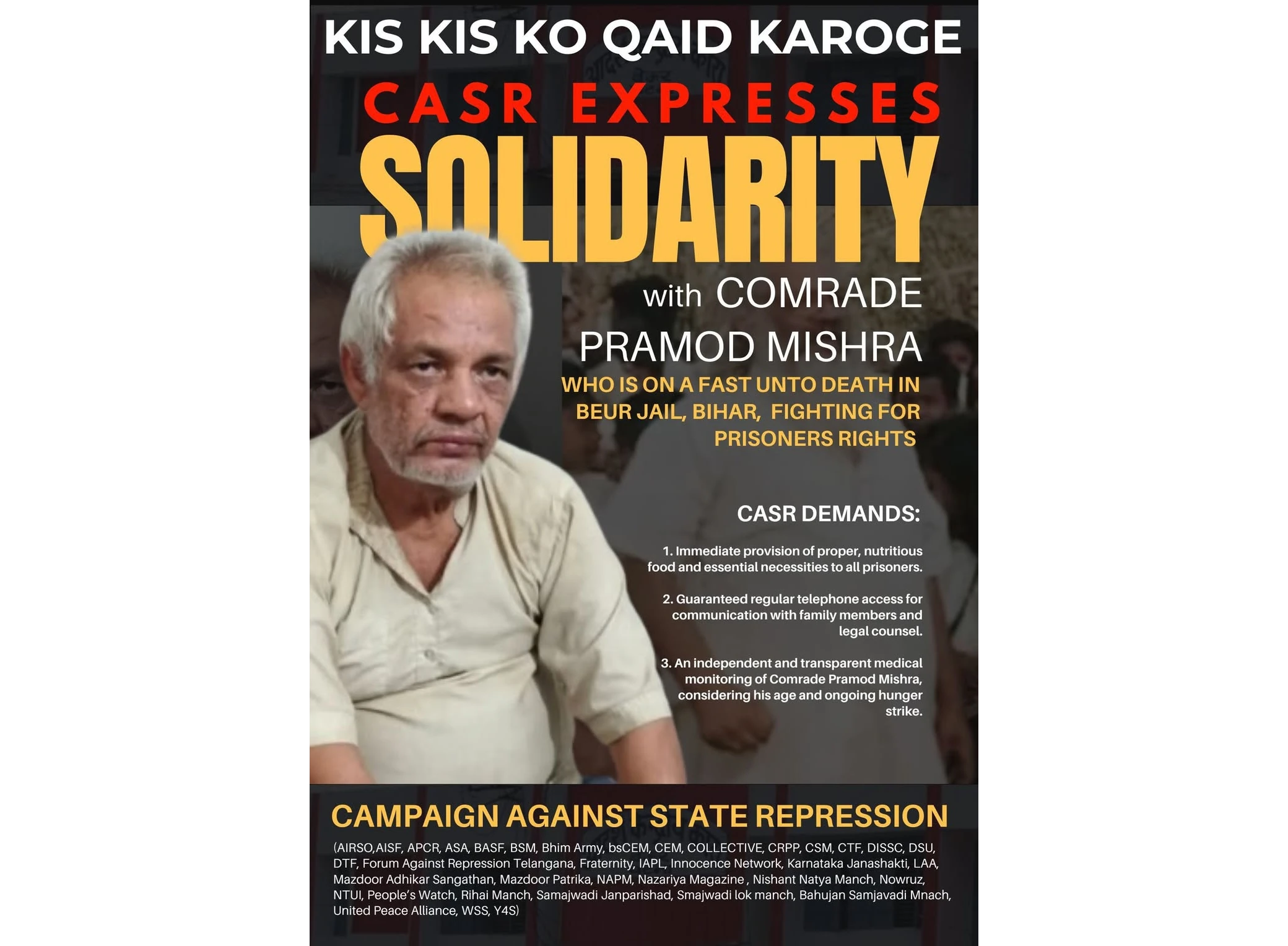 CASR EXPRESA SU SOLIDARIDAD CON EL CAMARADA PRAMOD MISHRA, QUIEN SE ENCUENTRA EN AYUNO HASTA LA MUERTE EN LA CÁRCEL DE BEUR, BIHAR, LUCHANDO POR LOS DERECHOS DE LOS PRISIONEROS.