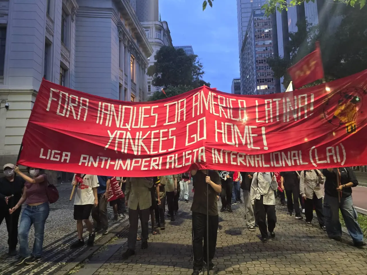 Imagen de cabecera: Pancarta de la Liga Antiimperialista en manifestación en Rio de Janeiro. Fuente: AND.