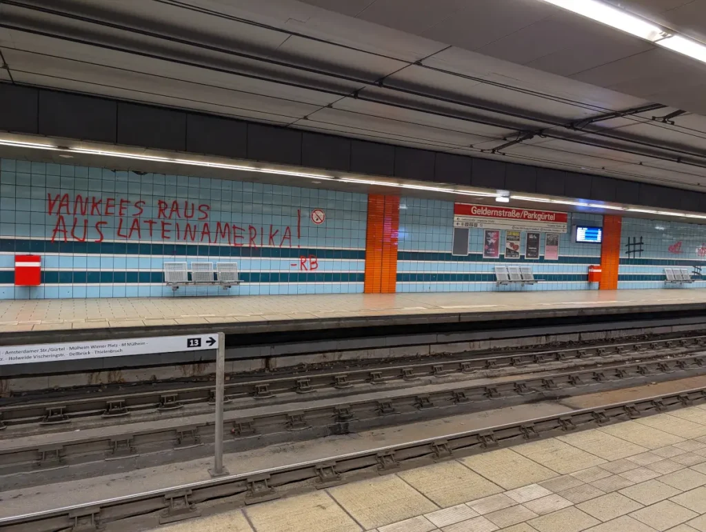 En Essen, Alemania, se realizó una concentración exprés denunciando al imperialismo yanqui contra Venezuela y otros pueblos del mundo y se repartió el volante de la LAI. Para finalizar, se quemó una bandera yanqui, acción que los vecinos respondieron abriendo sus ventanas y gritando “¡Viva Palestina!”.