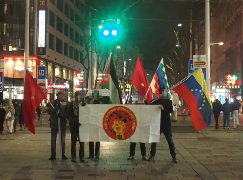 En Viena, Austria, se realizó una manifestación contra la agresión criminal de EEUU. También se quemó una bandera al final de la marcha.