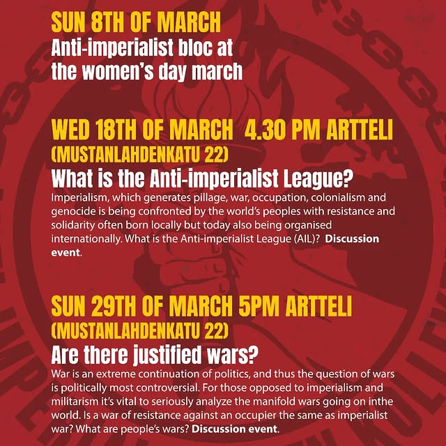 Próximos eventos del Colectivo Antiimperialista en Tampere, Finland
