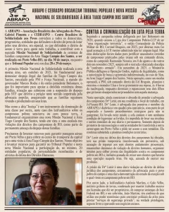 Next post Brasil: ABRAPO y CEBRASPO organizan Tribunal Popular y Misión de Solidaridad con el Área Tiago Campin dos Santos