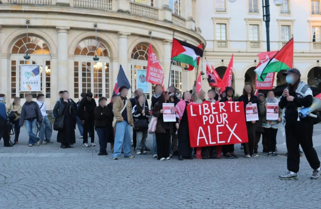 Esta tarde nos enteramos de la última detención de Alex, activista antiimperialista de la Ligue de la Jeunesse Révolutionnaire (LJR). Ya procesado por su apoyo a Palestina, Alex fue condenado en enero de 2026 a 10 meses de prisión condicional, 5 años de inhabilitación para poseer armas y ejercer cargos públicos, registro en el Fijait (Fichero Judicial Automatizado de Autores de Infracciones Terroristas) y una multa de 2.000 €. Tras esta nueva detención, es posible que el Estado intente anular su condena condicional para silenciarlo.