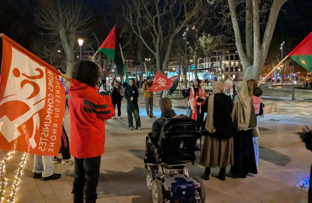 En Lyon, la ciudad donde Alex vive y hace campaña, se corearon varios discursos y consignas frente a la comisaría donde aún se encuentra detenido. Tras una hora, la policía salió de la comisaría creyendo que los manifestantes pretendían entrar en ella. Dispararon una bengala de advertencia y empujaron violentamente a la comitiva con escudos antidisturbios hacia la salida. Posteriormente, varios participantes fueron sometidos a controles de identidad, y algunos fueron seguidos por la BAC durante varios metros antes de ser liberados. Durante la concentración, los activistas recibieron información sobre Alex, quien les tranquilizó sobre su estado y les proporcionó información sobre el progreso de su caso. Alex debe comparecer ante el tribunal de Lyon mañana por la tarde (jueves 12 de marzo) para una audiencia inmediata. Se prevé otra concentración de apoyo en Lyon frente al juzgado, a partir de las 13:30.