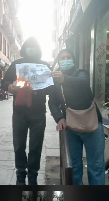 En Sigal, Lalitpur y Dilli Bazaar, en Katmandú, militantes del RCPN quemaron figuras de la primera ministra Sushila Karki.