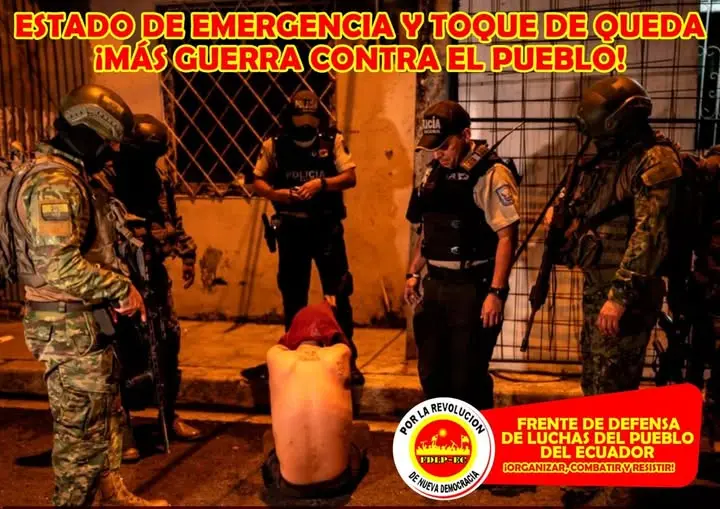 FDLP – Ecuador: ESTADO DE EMERGENCIA Y TOQUE DE QUEDA, ¡MÁS GUERRA CONTRA EL PUEBLO!