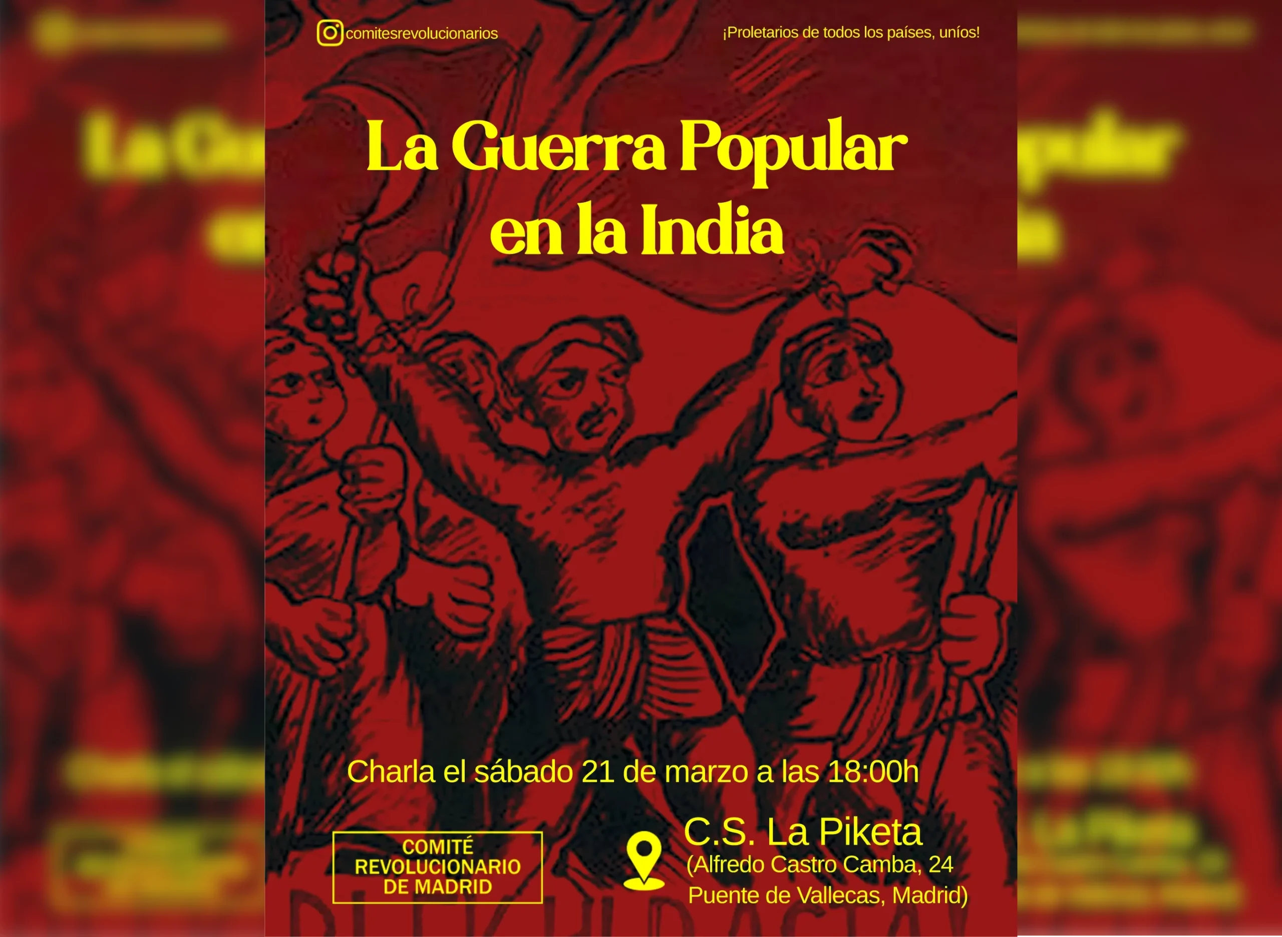 Los Comités Revolucionarios han publicado una serie de acciones en solidaridad con la Guerra Popular en India. En Madrid tendrá lugar una presentación sobre este tema e 21 de marzo en el vecindario obrero Vallekas.