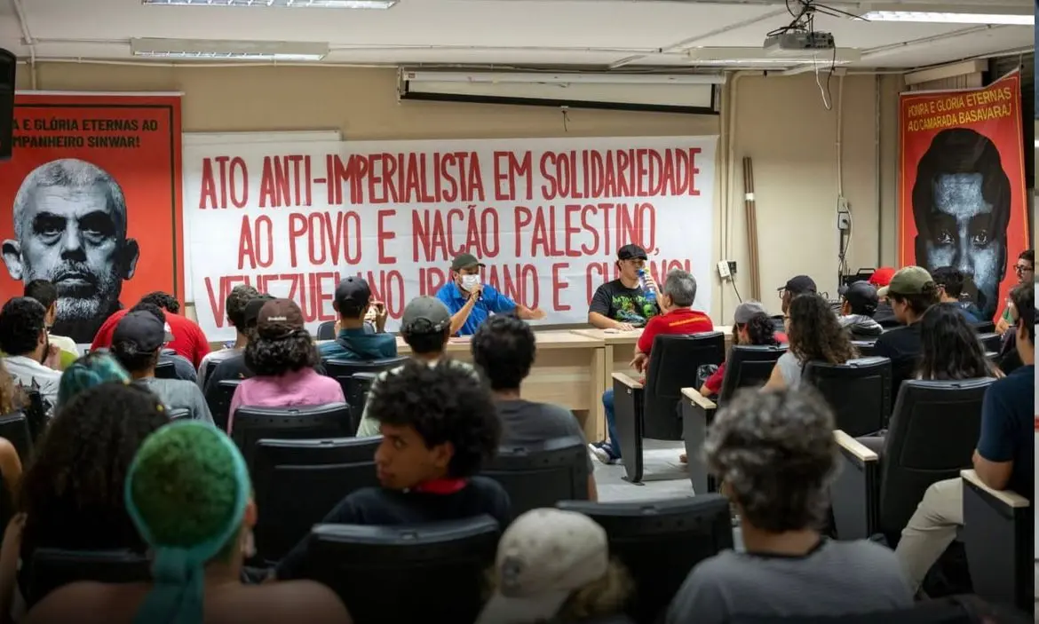 Un evento antiimperialista victorioso congregó a más de 120 activistas y simpatizantes en la UFPE para denunciar el papel servil que el antiguo Estado brasileño y su aparato represivo desempeñan bajo las órdenes de Washington. El evento, organizado por grupos estudiantiles y la Liga Antiimperialista (LAI), reafirmó la urgencia de intensificar la lucha para derrotar al “Gran Satán” (EE. UU.) en todos los países oprimidos. Durante la actividad, la Policía Militar de Pernambuco realizó labores de vigilancia y hostigamiento, confirmando su papel como lacayo del imperialismo yanqui.