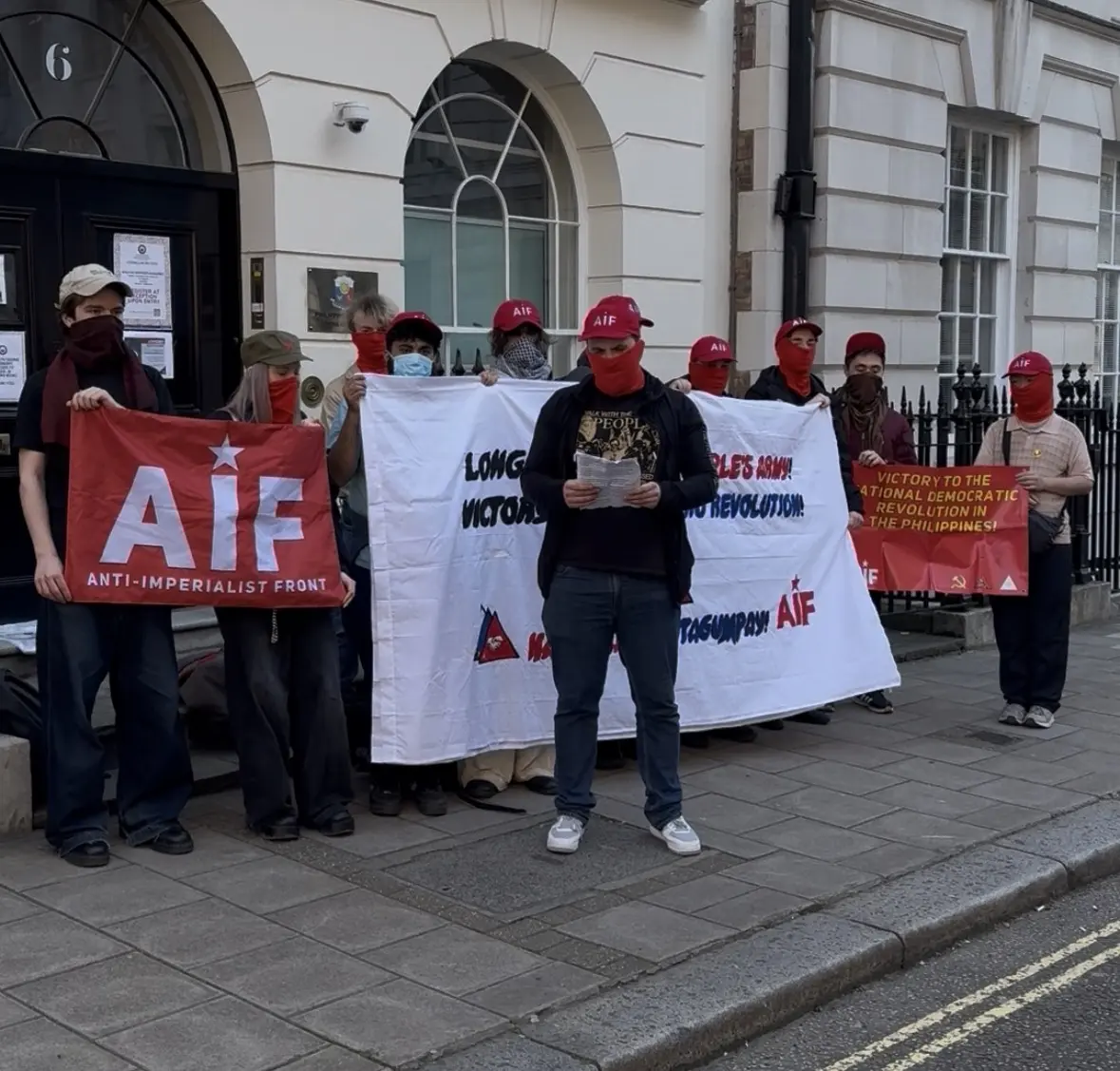 El 21, la AIF organizó un despliegue de pancartas frente a la embajada de Filipinas en Londres. La pancarta decía: “¡Viva el Nuevo Ejército del Pueblo! ¡Victoria para la Revolución Filipina!”. También se pronunciaron discursos de solidaridad.