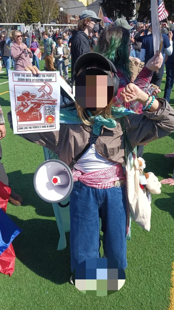 El 28 de marzo, los activistas hablaron a los participantes en la protesta “No Kings Day” contra Donald Trump sobre la Guerra Popular en India y la genocida Operación Kagar, respaldada por EE. UU. e Israel, y tanto los activistas como los participantes en la protesta establecieron paralelismos entre la situación en India y la situación en Palestina y en el Oriente Medio Ampliado en su conjunto. Se tomó una foto con una pancarta en honor al dirigente del Partido Comunista de India (Maoísta) recientemente martirizado, el camarada Hidma, en la que se leía: “¡Viva el Camarada Hidma, la Guerra Popular en India triunfará inevitablemente!”.