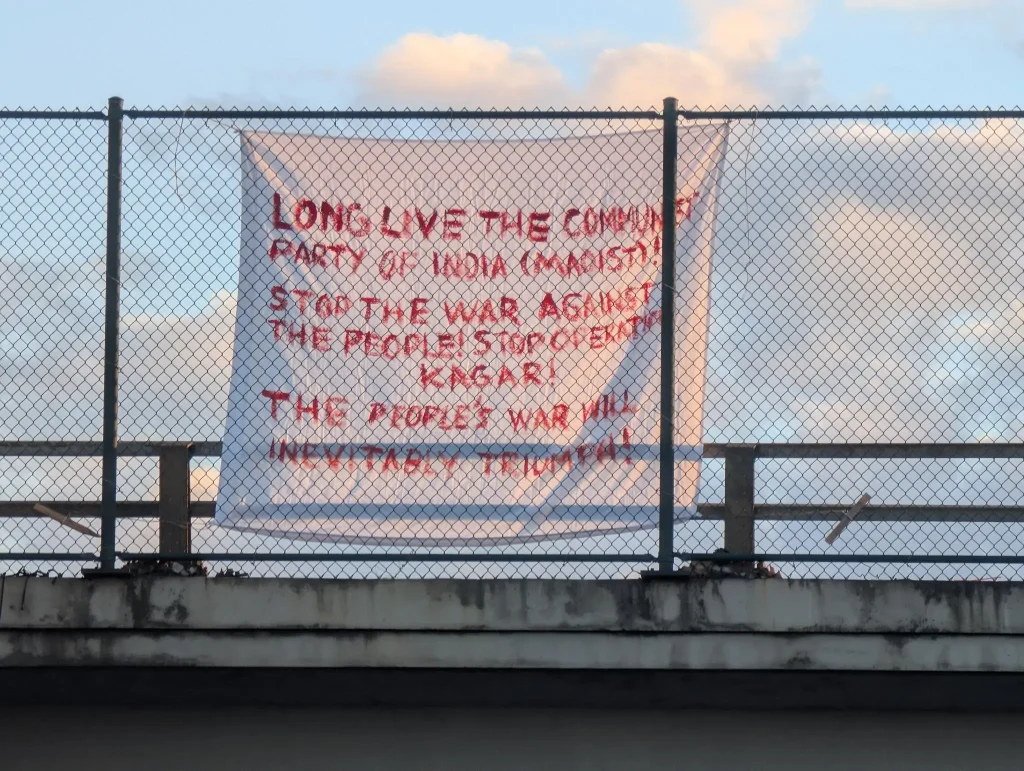 Los activistas colgaron pancartas que se podían ver desde las concurridas carreteras; en ellas se leía: “¡Viva el Partido Comunista de India (Maoísta)! ¡Detener la guerra contra el pueblo! ¡Detener la Operación Kagar! ¡La Guerra Popular triunfará inevitablemente!”