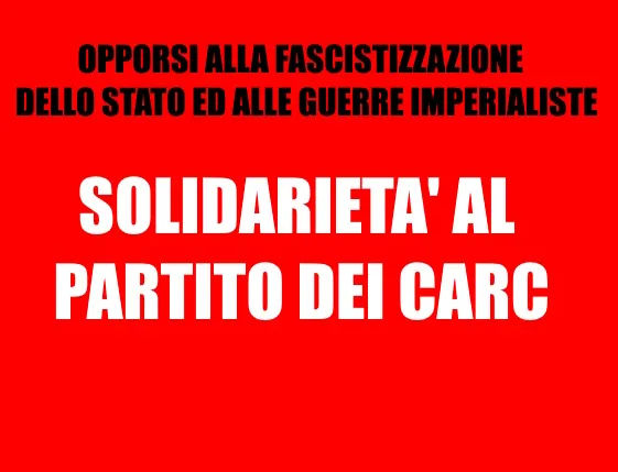Expresamos nuestra solidaridad con el Partido CARC por los registros que se llevan a cabo hoy, 21 de abril, y por la impugnación propuesta del artículo 270-bis [Nota del traductor: artículo del Código Penal sobre la llamada “asociación subversiva”]. Se trata de otra operación represiva contra las fuerzas de oposición que luchan contra el gobierno de Meloni y contra las empresas y guerras imperialistas. Es necesario construir una amplia movilización contra el proceso fascista en curso y contra las fuerzas políticas en el poder, incluidas las de la llamada «centroizquierda», que lo han promovido y alimentado durante décadas.